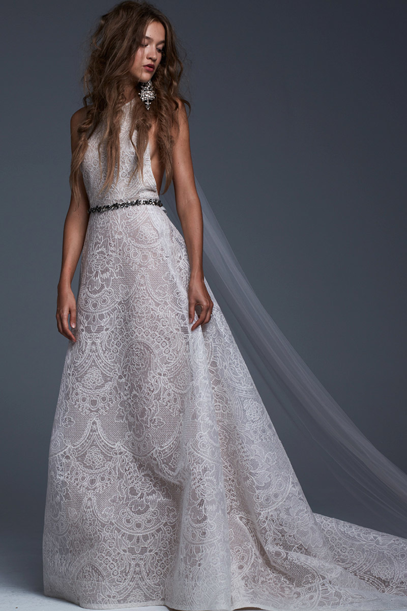 A:你的婚纱要配你的婚礼。我鼓励姑娘们多多尝试,去发现自己身上不同的面,但很多姑娘会把选婚纱放在第一步,要知道,在选婚纱前,要考虑好你的婚礼是什么风格?比如一个疯狂的婚礼派对和威严庄重的教堂婚礼所要搭配的婚纱是完全不同的。